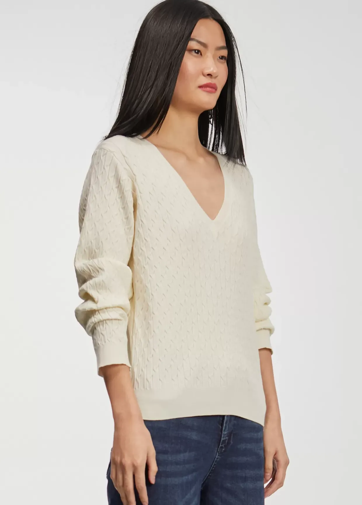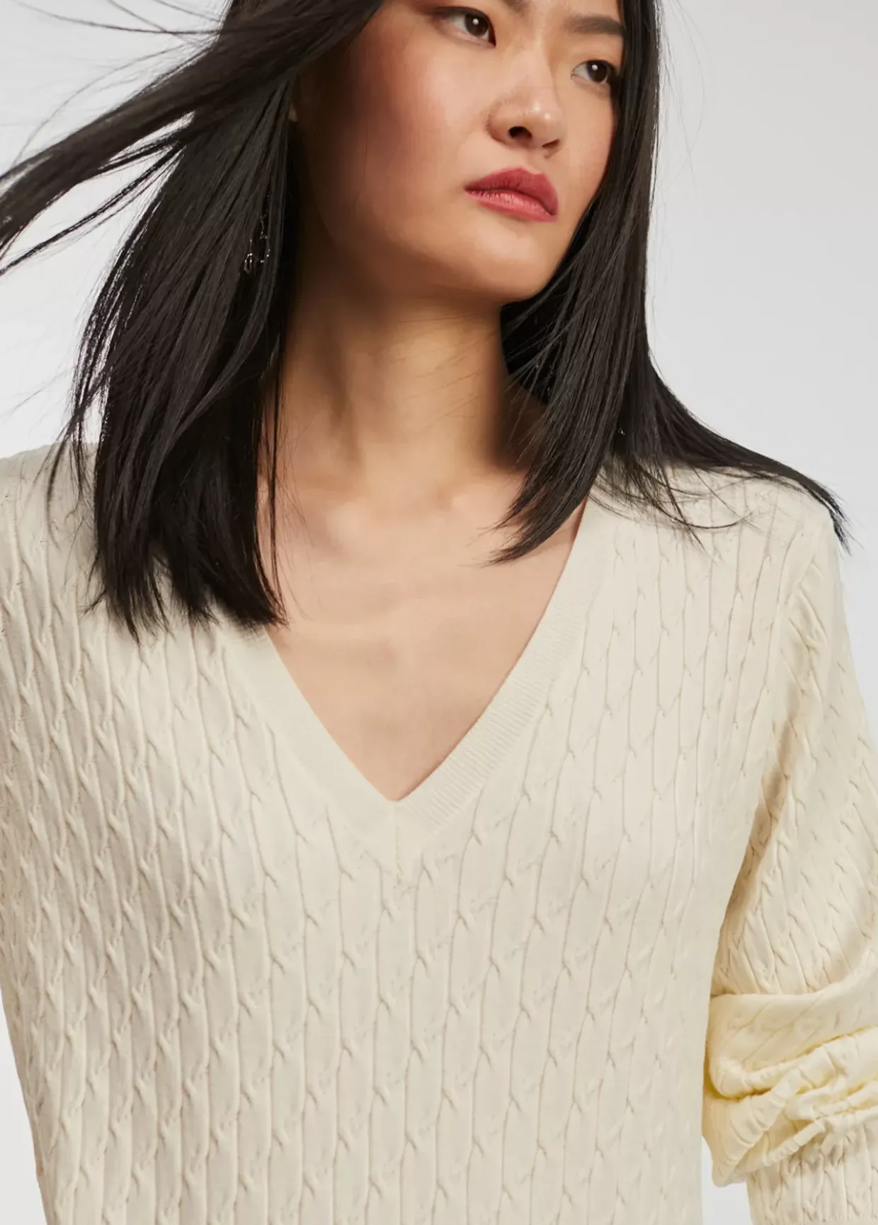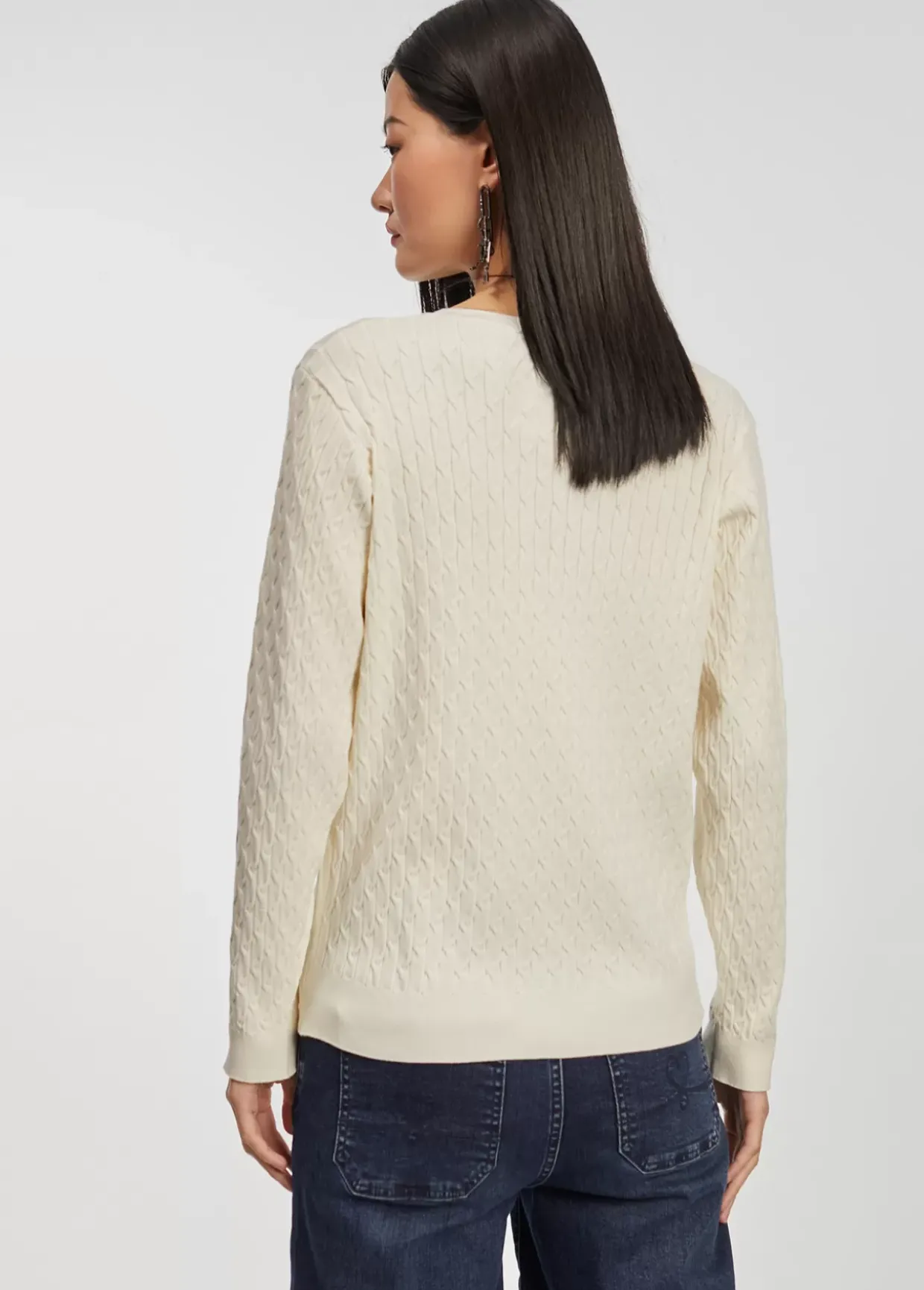 Jersey de cuello pico y manga larga en punto trenzado.