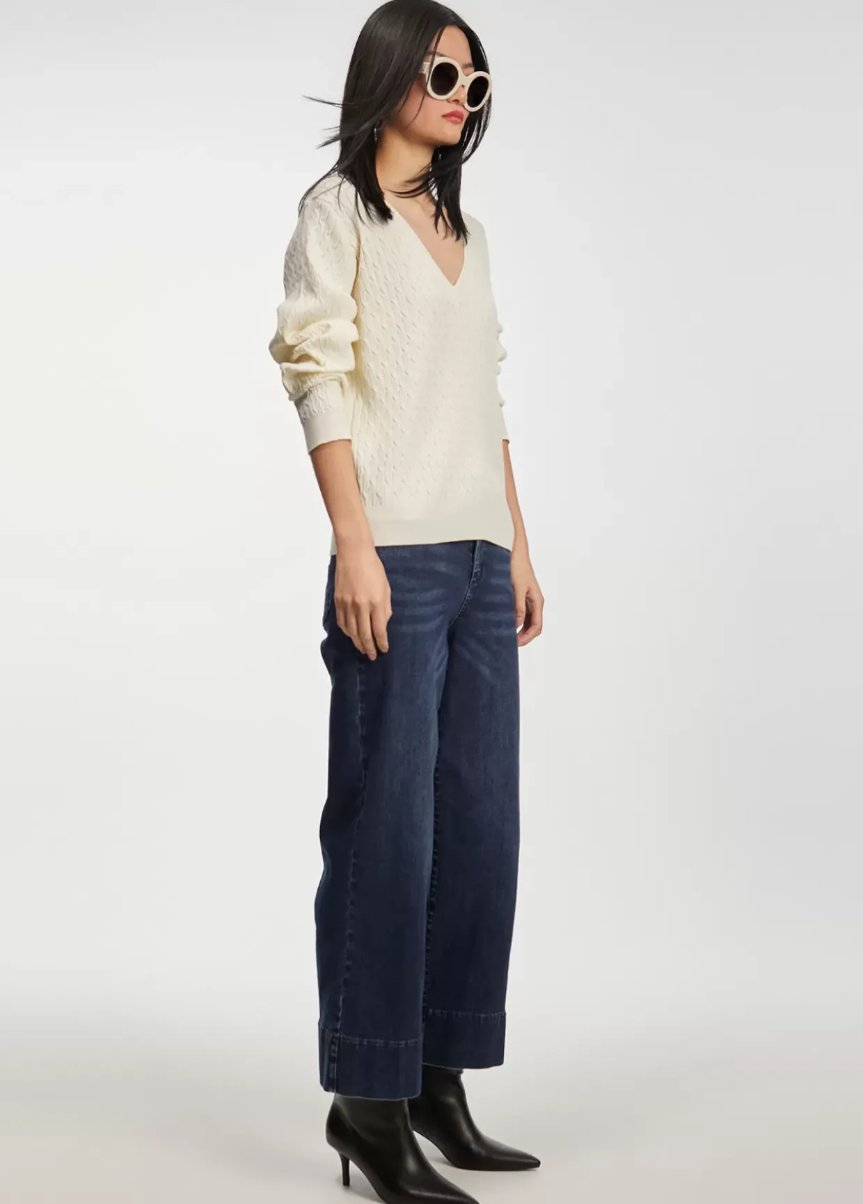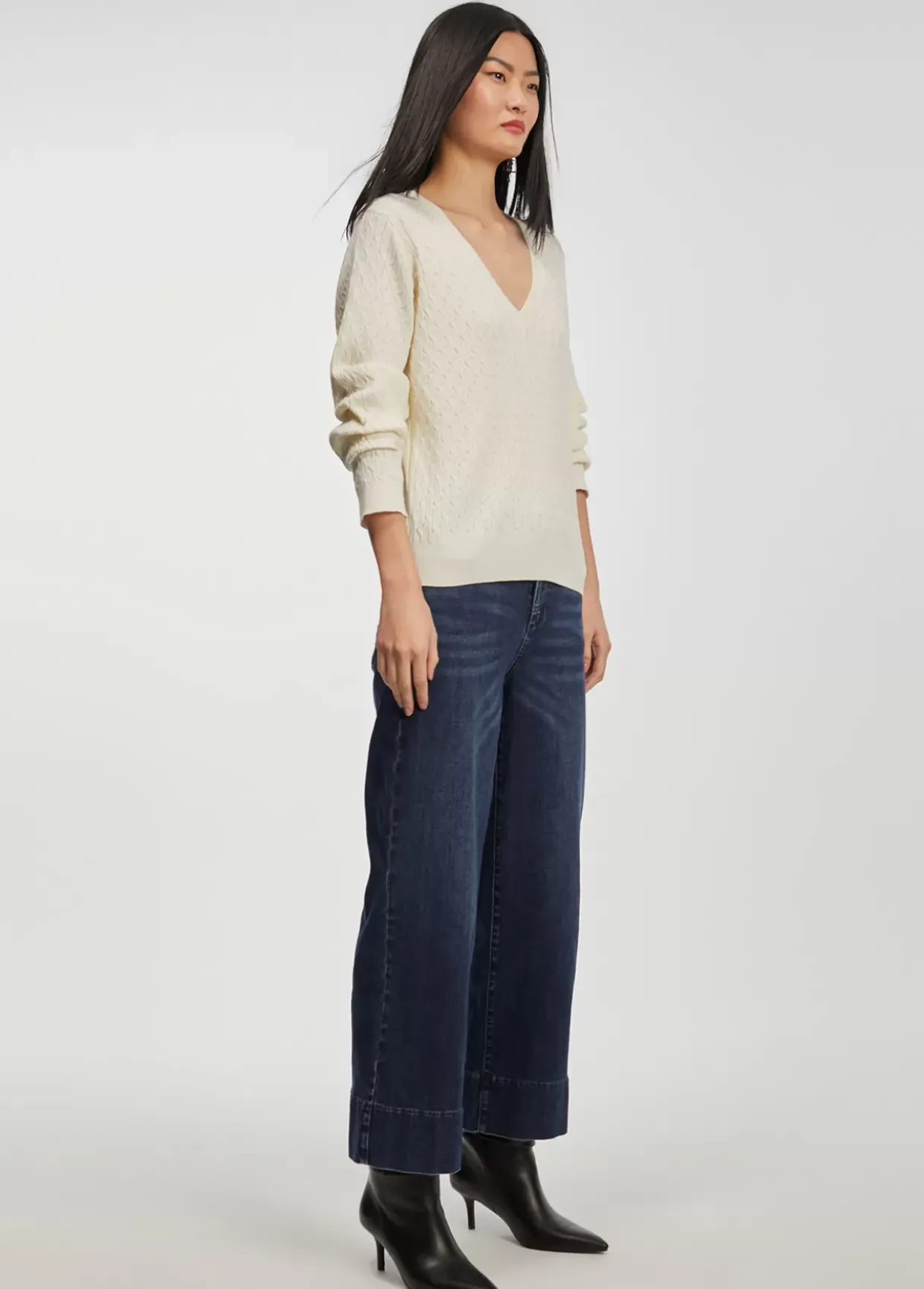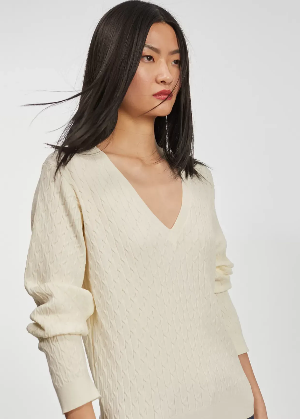 Jersey de cuello pico y manga larga en punto trenzado.