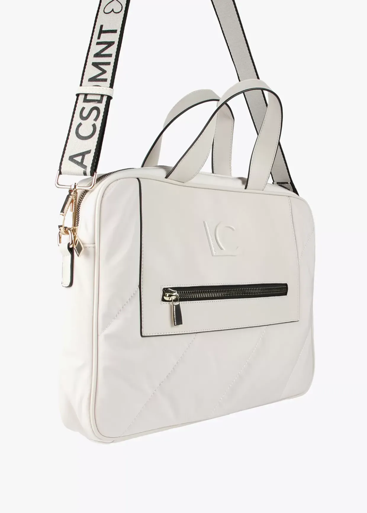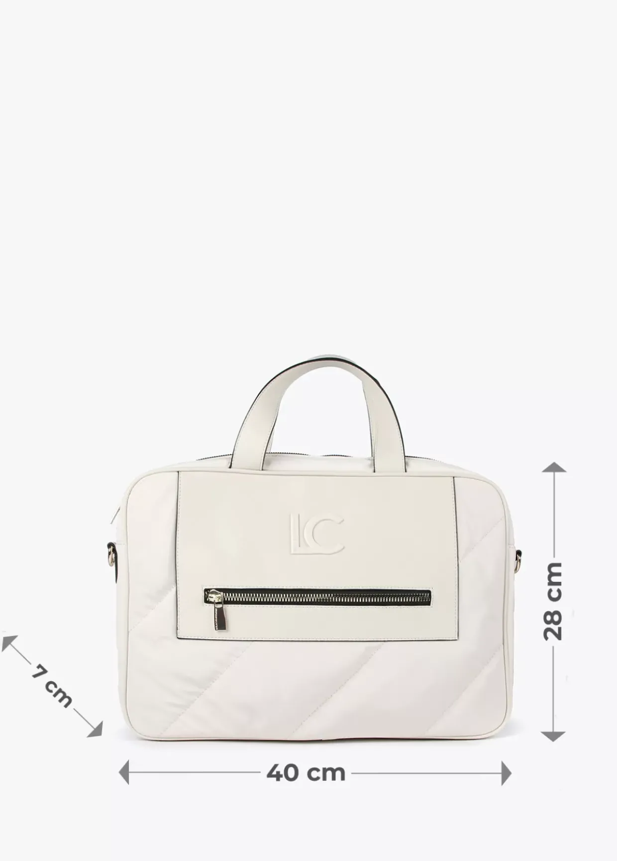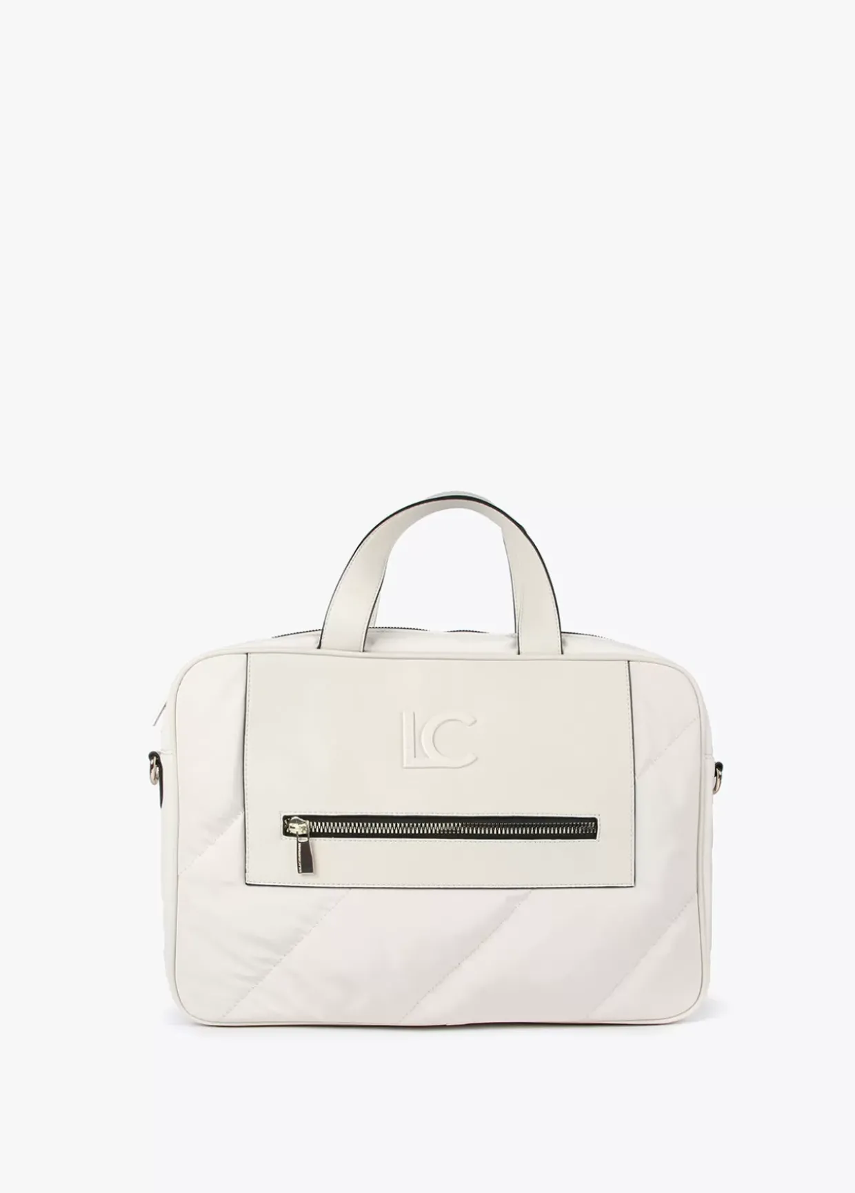 Maletín para ordenador acolchado en nylon y efecto piel combinado. Dos bolsillos exteriores con cremallera. El bolsillo trasero permite ajustar el maletín al asa de una maleta común para facilitar su transporte. Cierre central y bolsillo interior con cremallera. Asas de mano y asa bandolera logotipada ajustable y extraible.