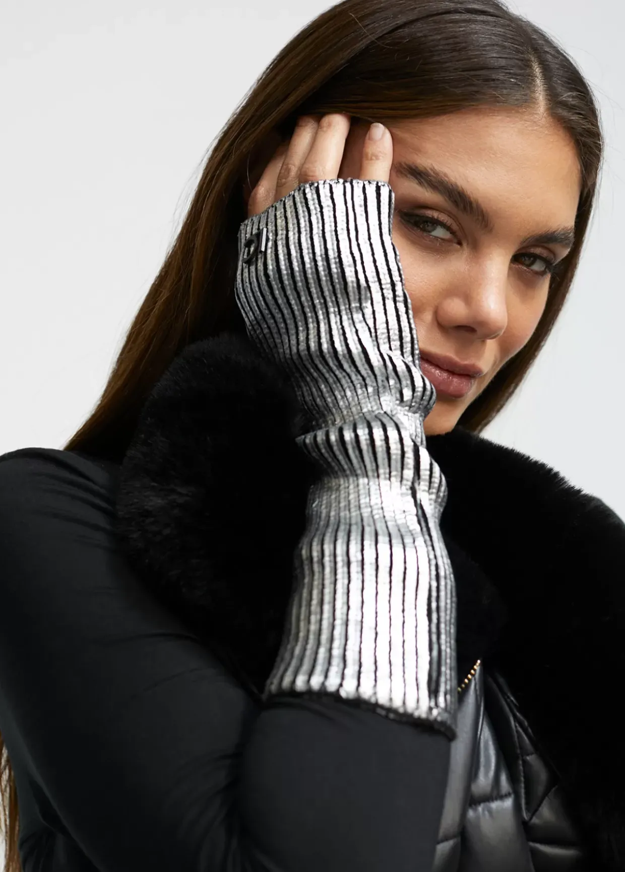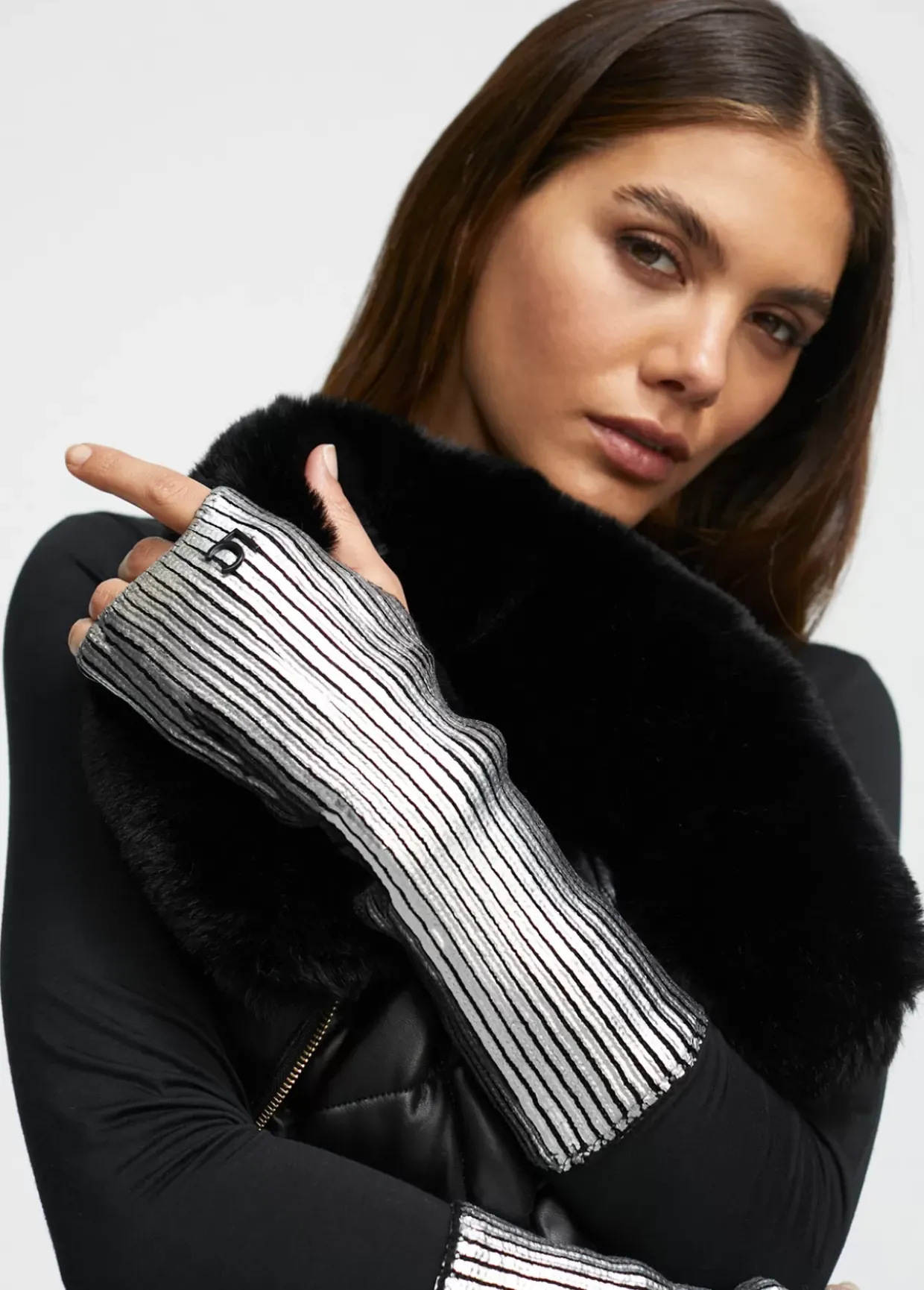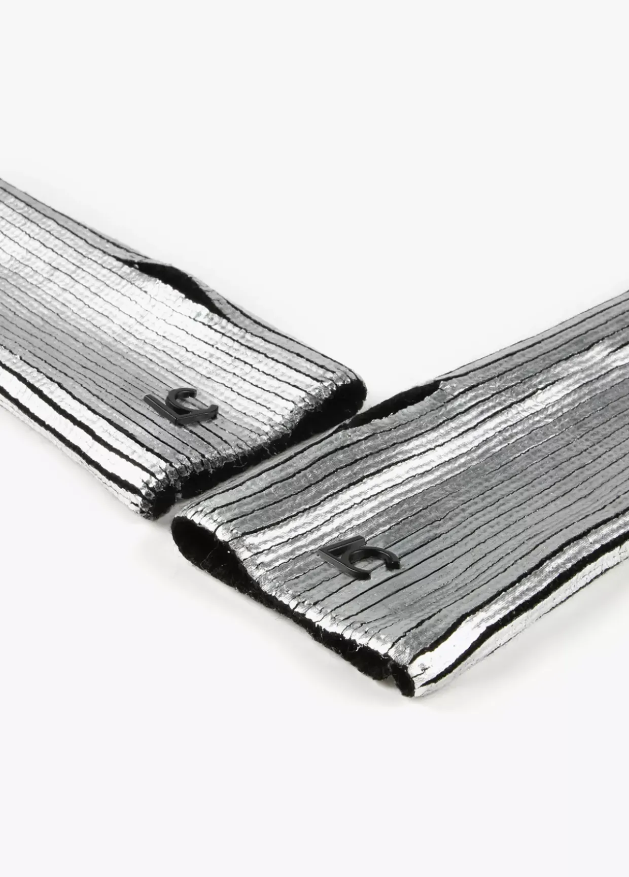 Mitones de tricot metalizados con letras logo lacadas.
