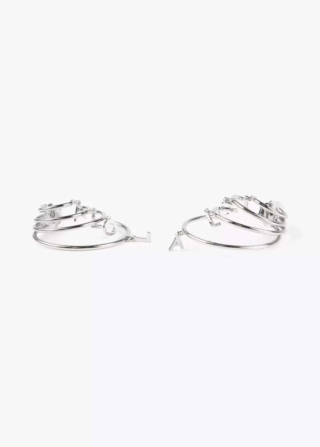Pendientes multi aro de medidas escaladas y letras Lola como colgantes.