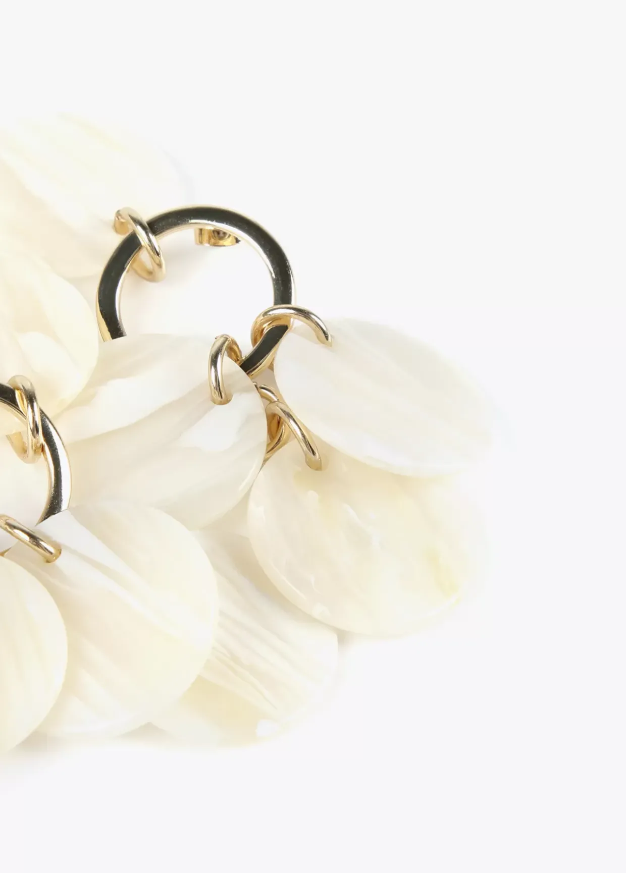 Pendientes de aro dorados con multi piezas blancas y nacaradas.