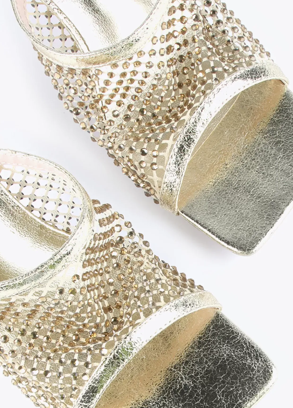 Sandalia de tacón y malla de strass
