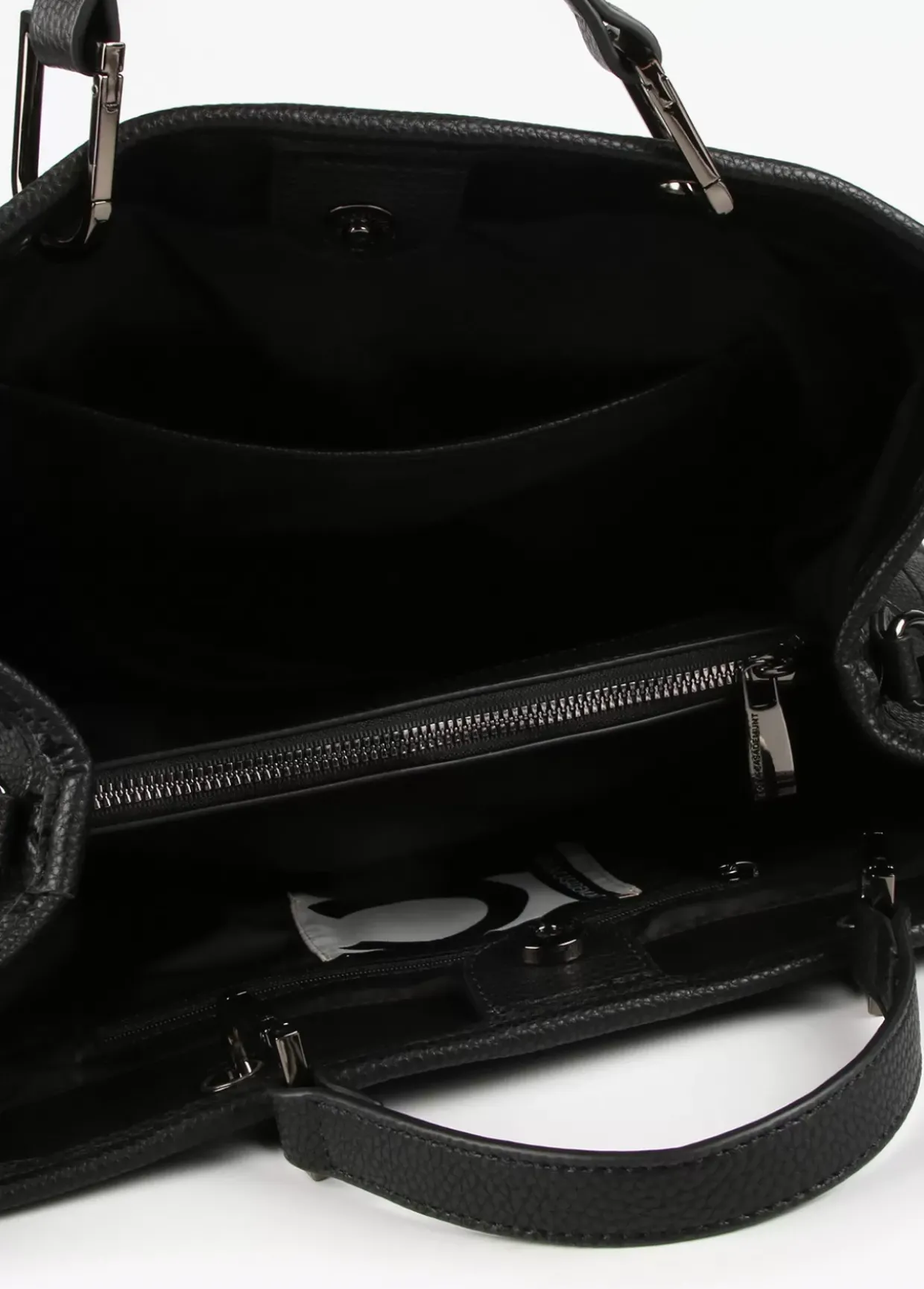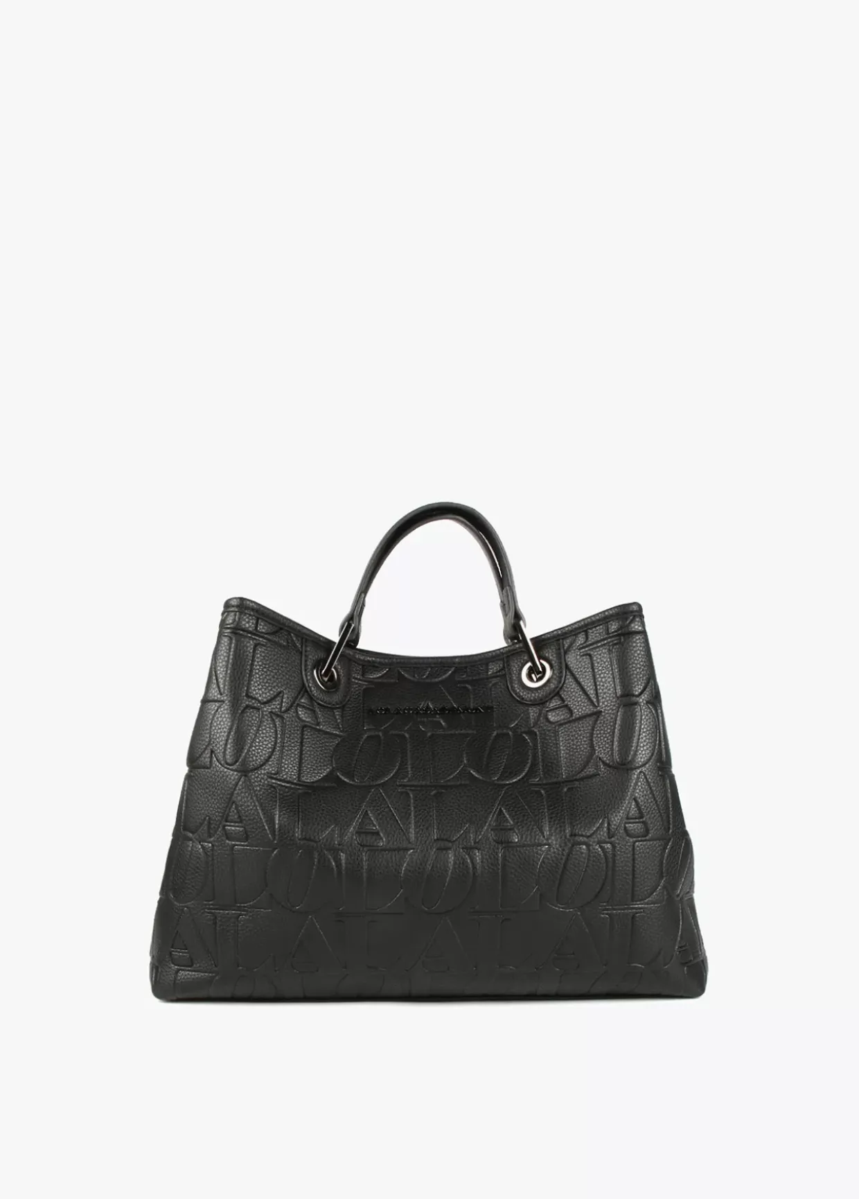 Bolso tipo shopper grabado en efecto piel y logo en parte frontal. Asas de mano y asa bandolera ajustable y extraíble. Cierre con botón imantado en lengüeta.