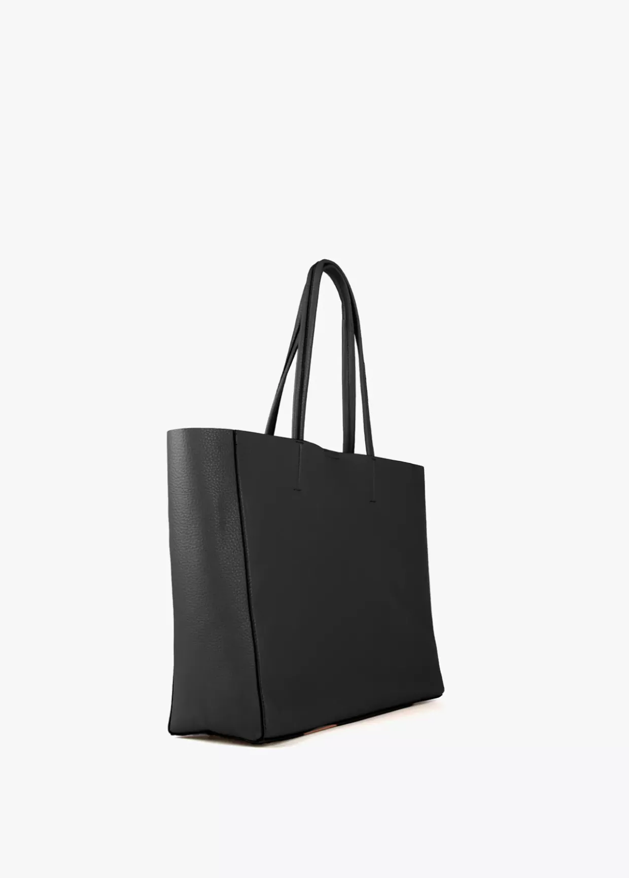 Bolso tipo shopper en efecto piel troquelado y logo lacado en parte frontal. Asas de hombro, cierre con botón imantado en lengüeta y bolsito neceser interior con cierre de cremallera.