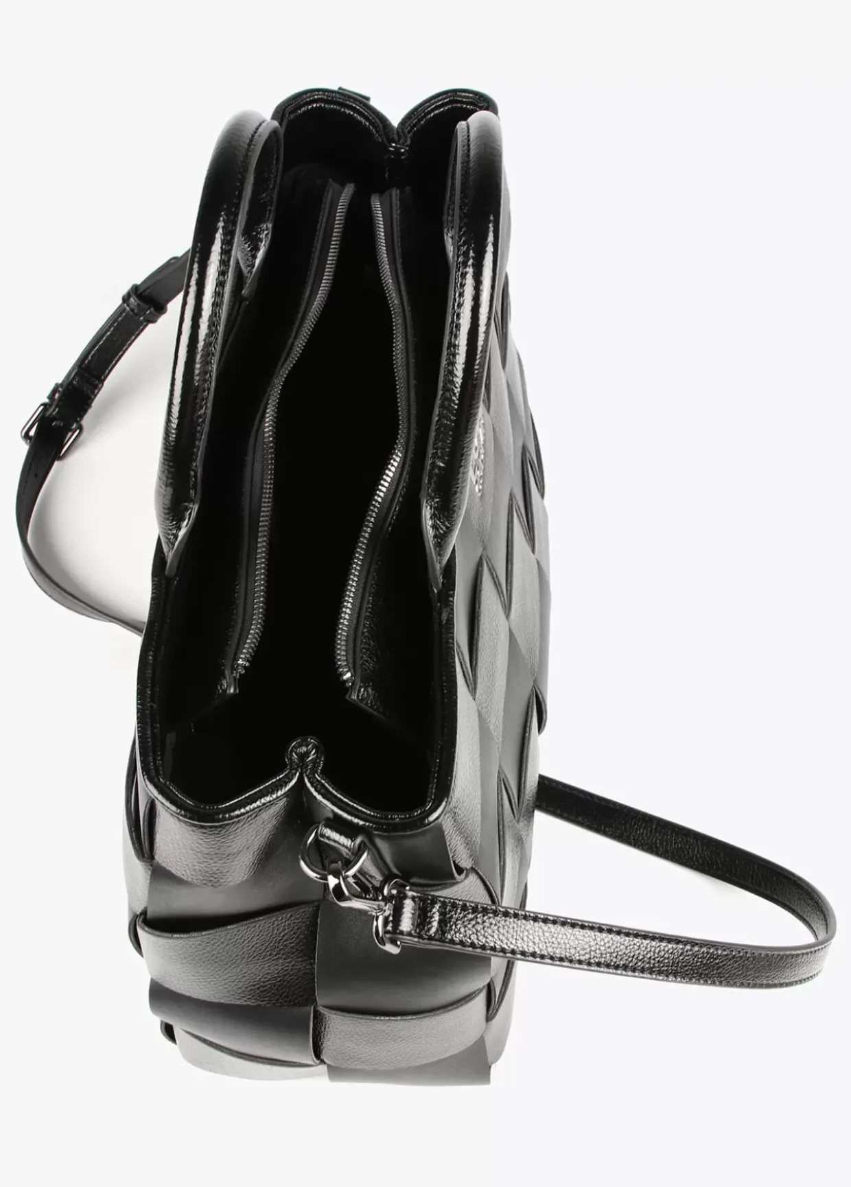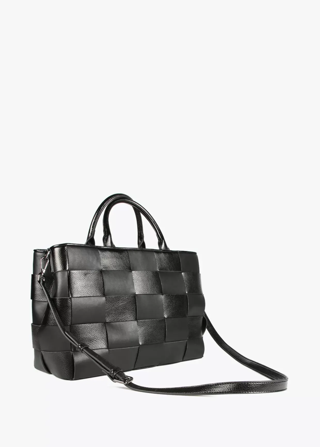 Bolso tipo shopper trenzado en efecto piel y logotipo grabado en parte frontal. Asas de mano y asa bandolera extraíble. Cierre con cremallera.