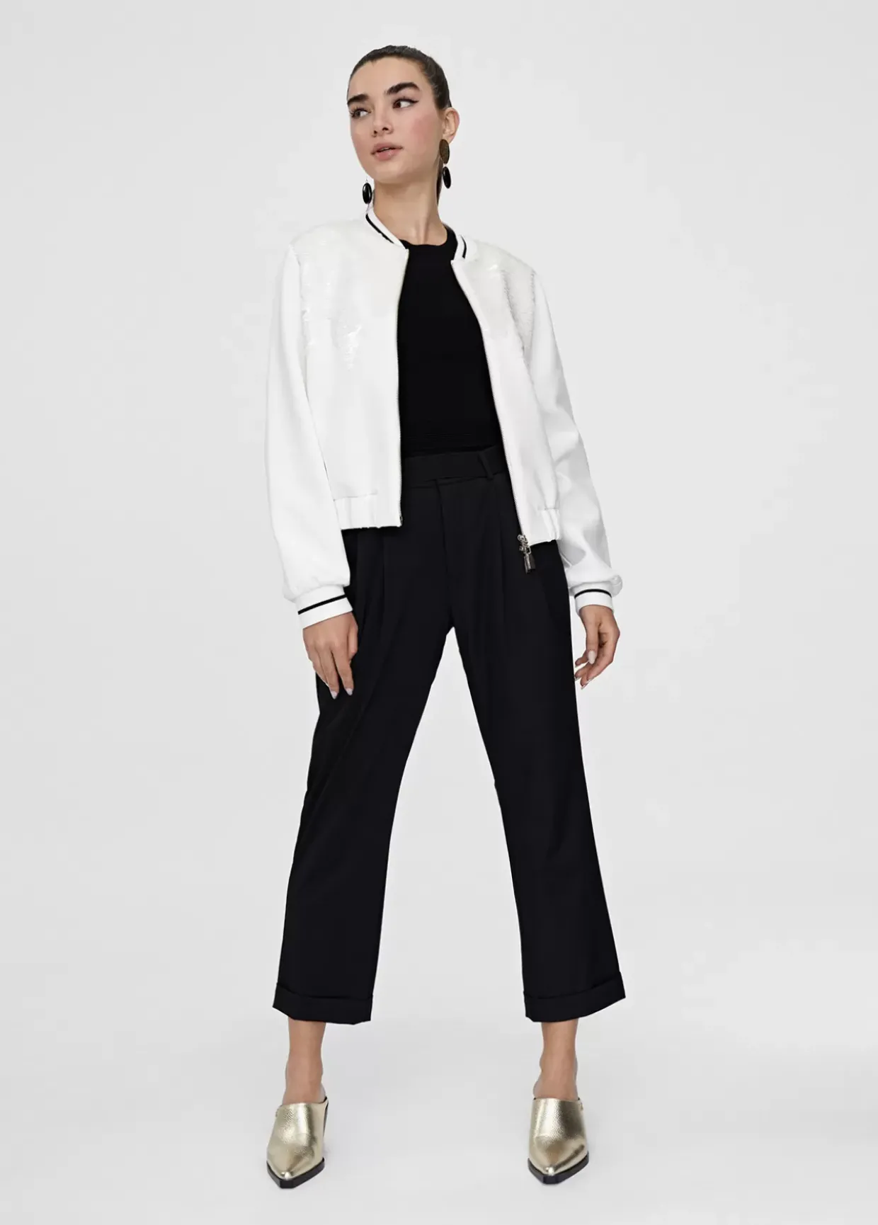 Sudadera con frontal de lentejuelas a tono. Cuello y puños con rib a contraste. Cerrada con cremallera dorada. Bolsillos laterales. Bajo elástico.
