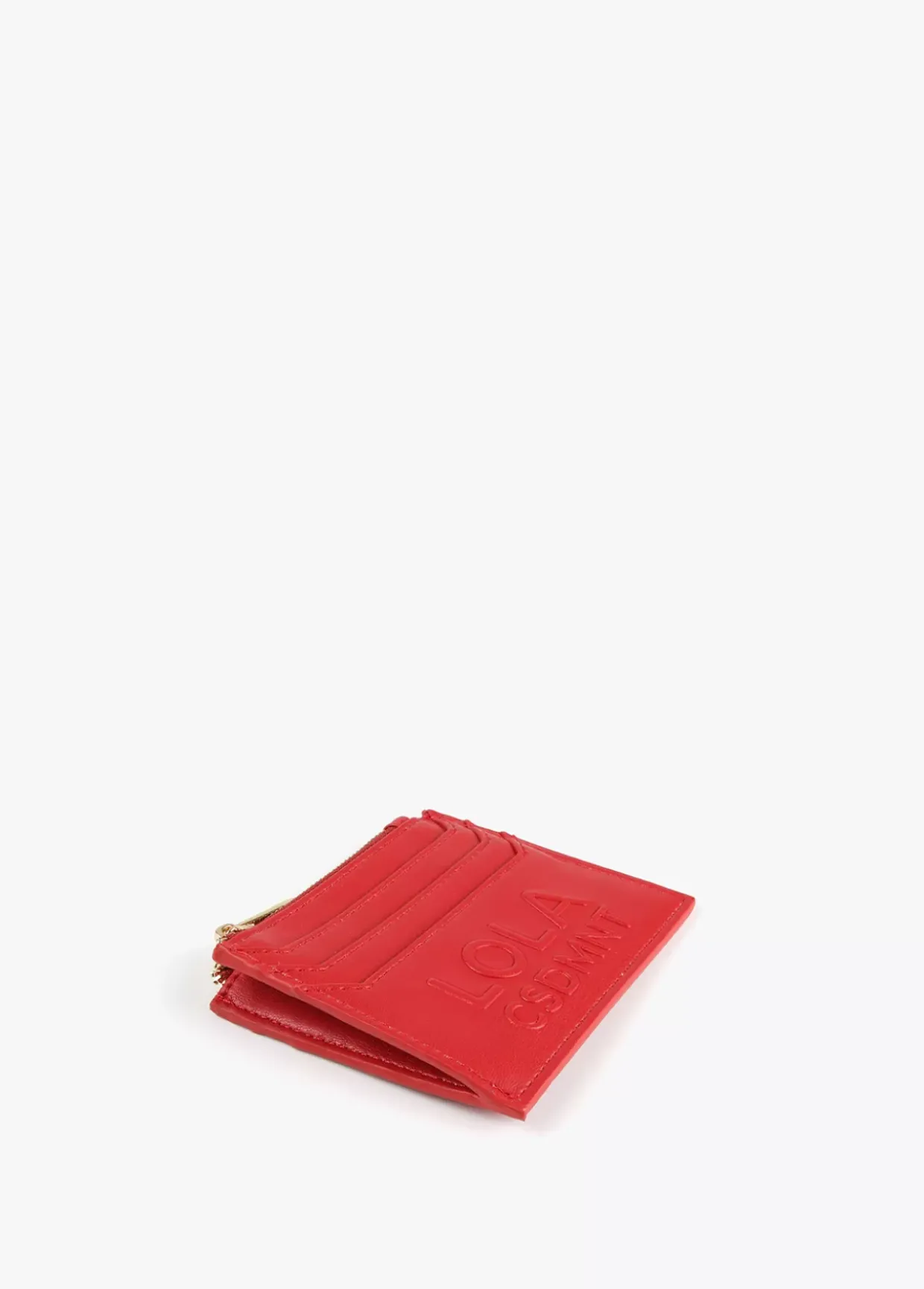 Tarjetero en efecto piel. Logo lacado en parte frontal y bolsillo con cierre de cremallera.