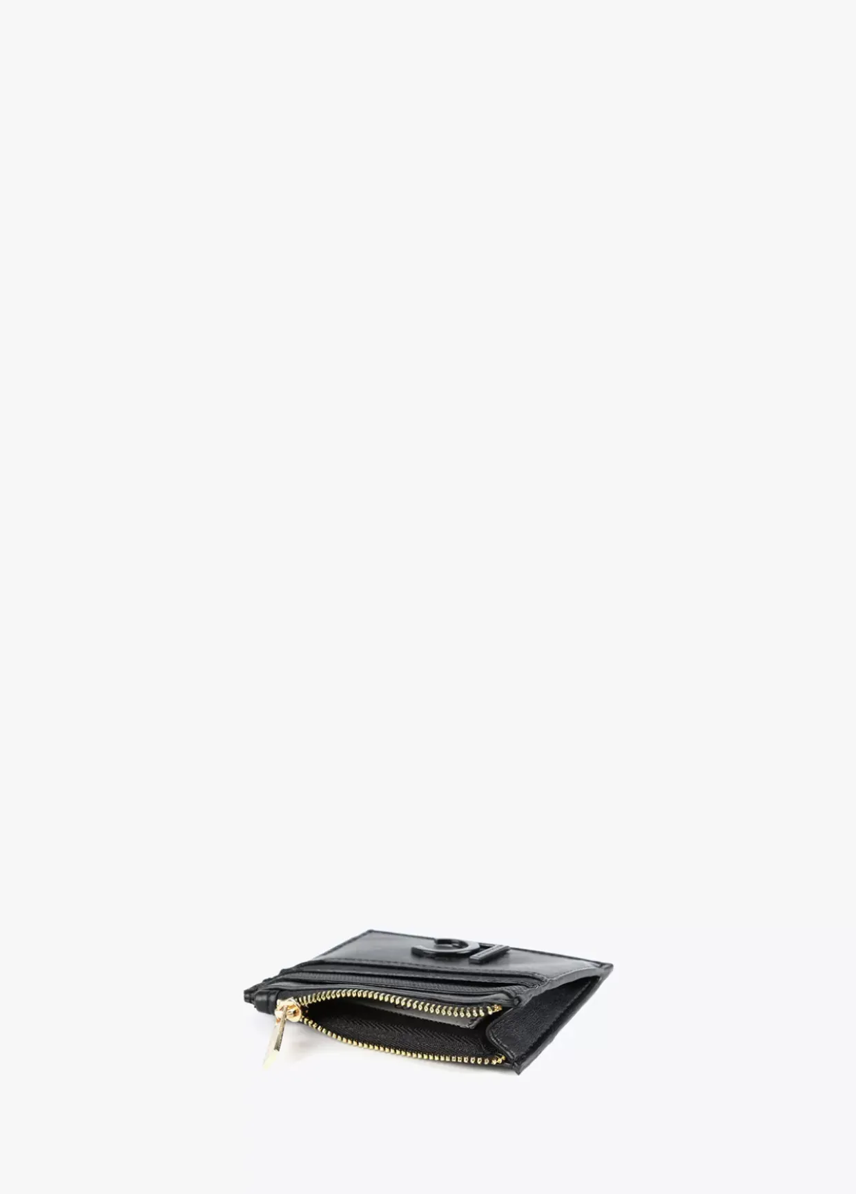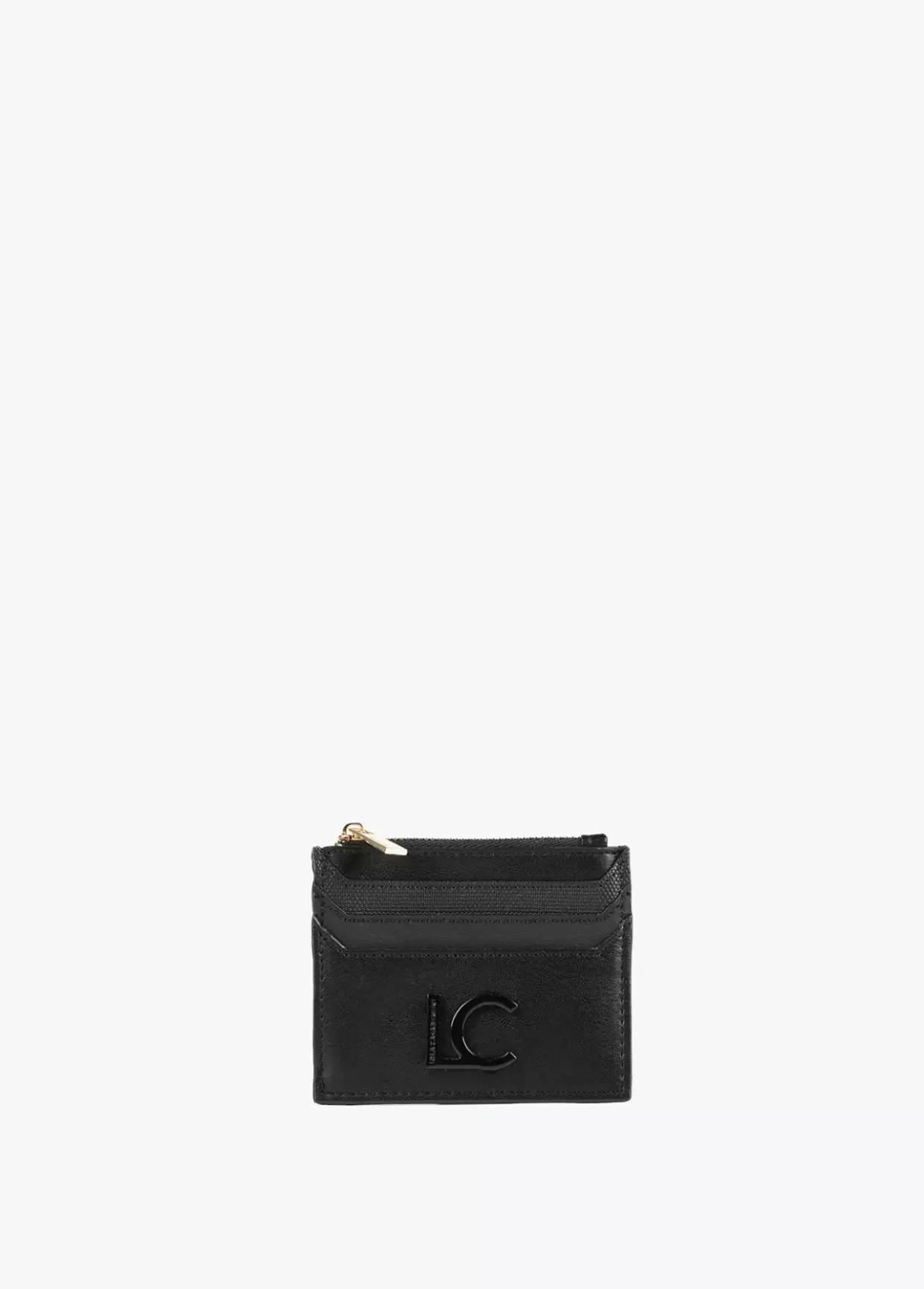 Tarjetero en efecto piel y logo lacado en parte frontal. Bolsillo con cierre de cremallera.