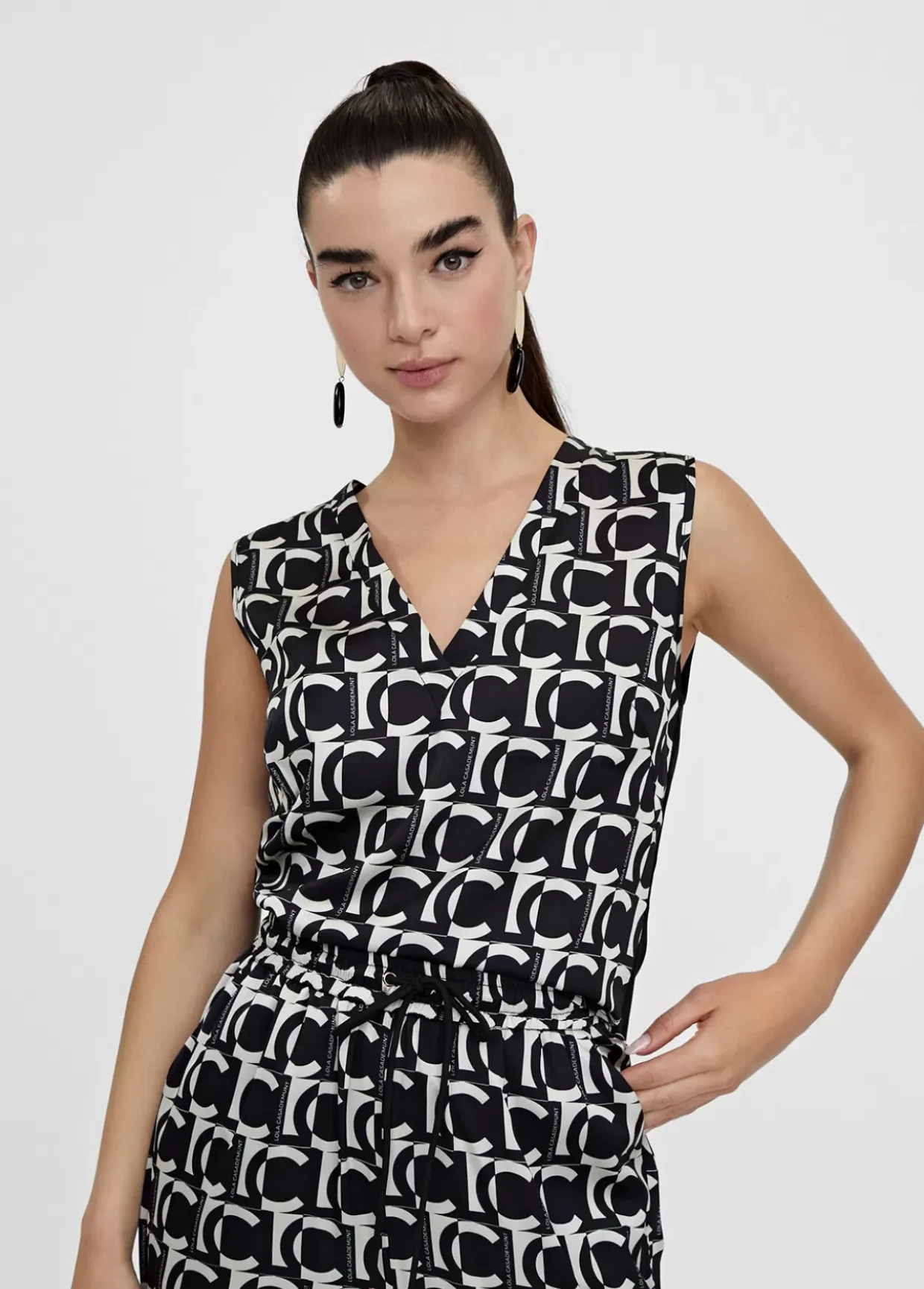 Top fluido monograma LC bicolor. Escote pico y manga sisa.
