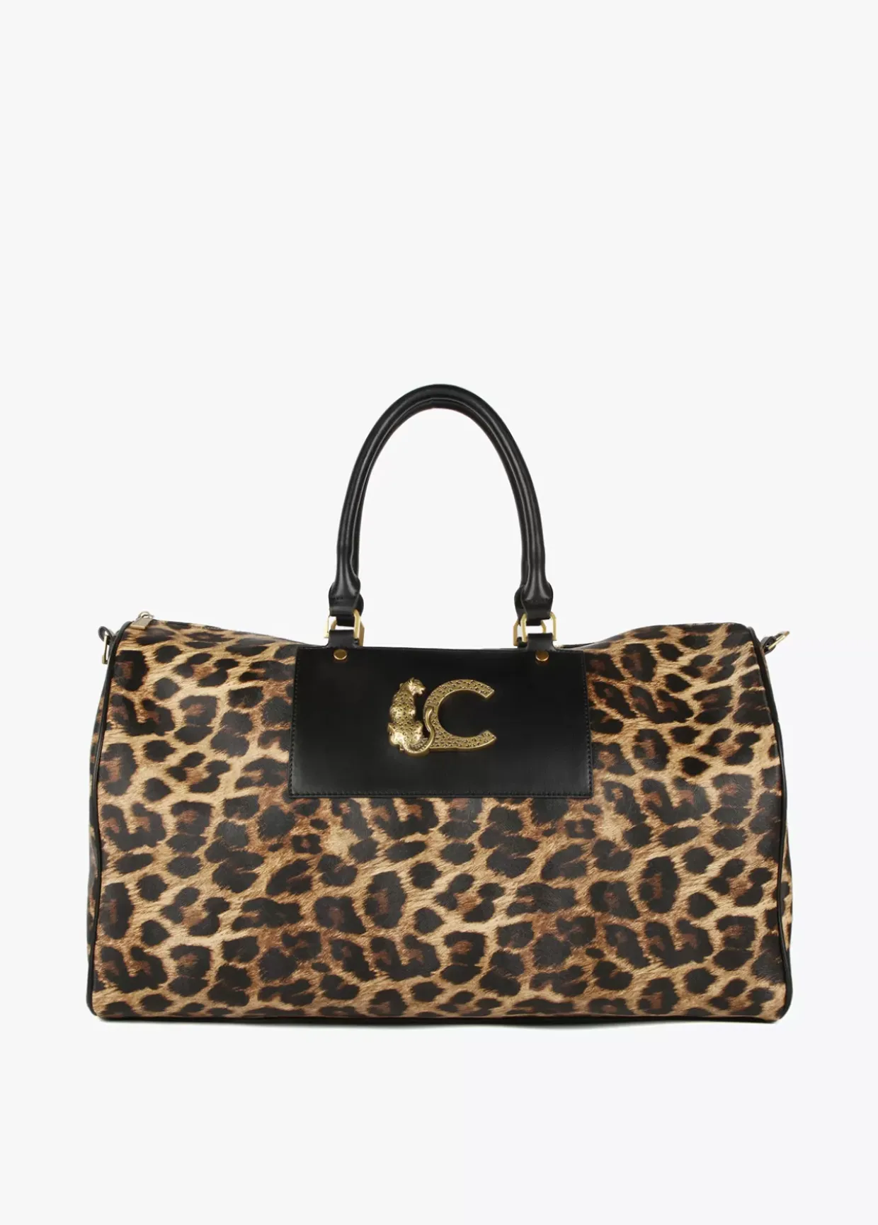 Weekend en efecto piel y estampado animal con logo animal dorado en parte frontal. Asas de mano, asa bandolera logotipada extraíble y cierre de cremallera.