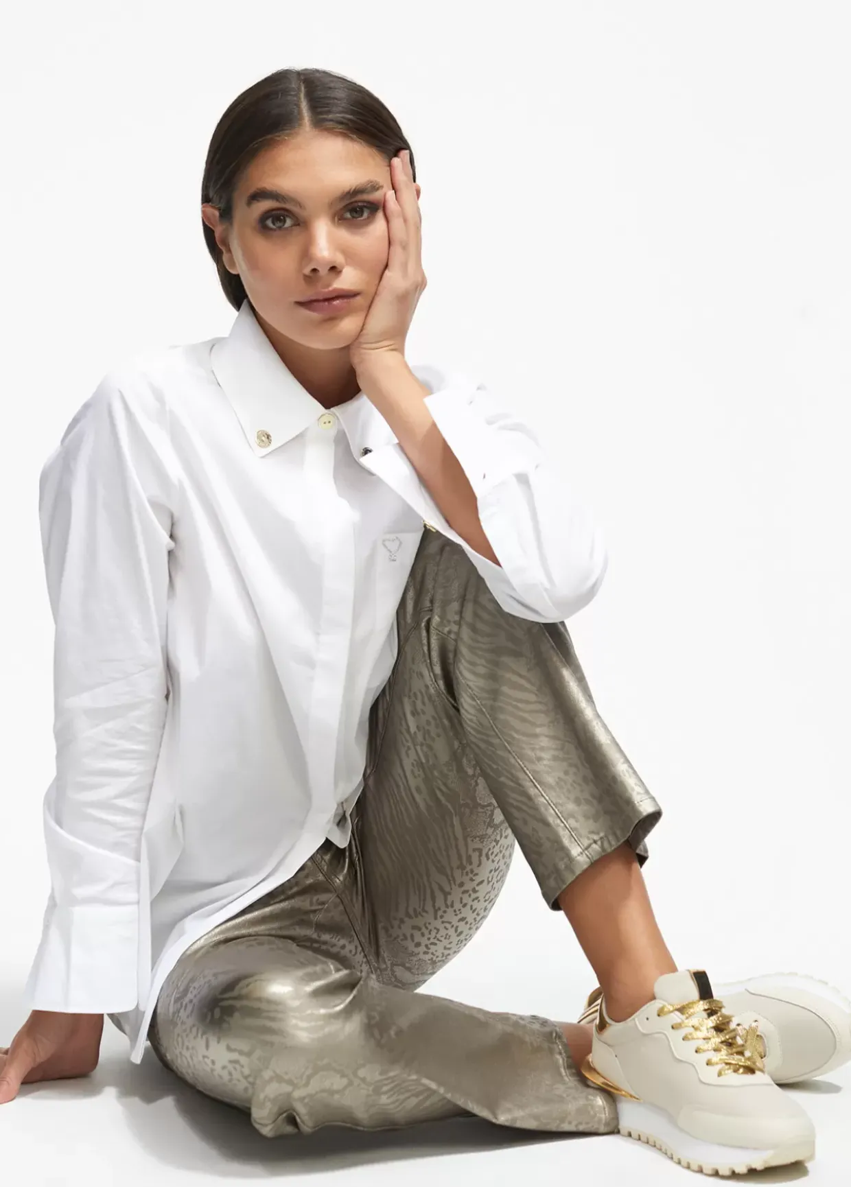Zapatillas deportivas tipo sneakers con detalles dorados combinados. Logo en lengüeta y plantilla y maxi letras logo en el lateral. Doble cordón, dorado y blanco.